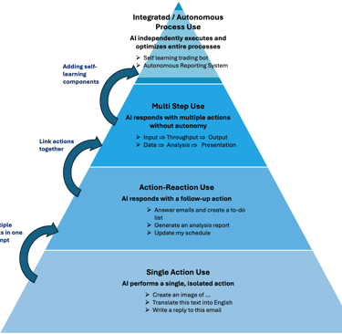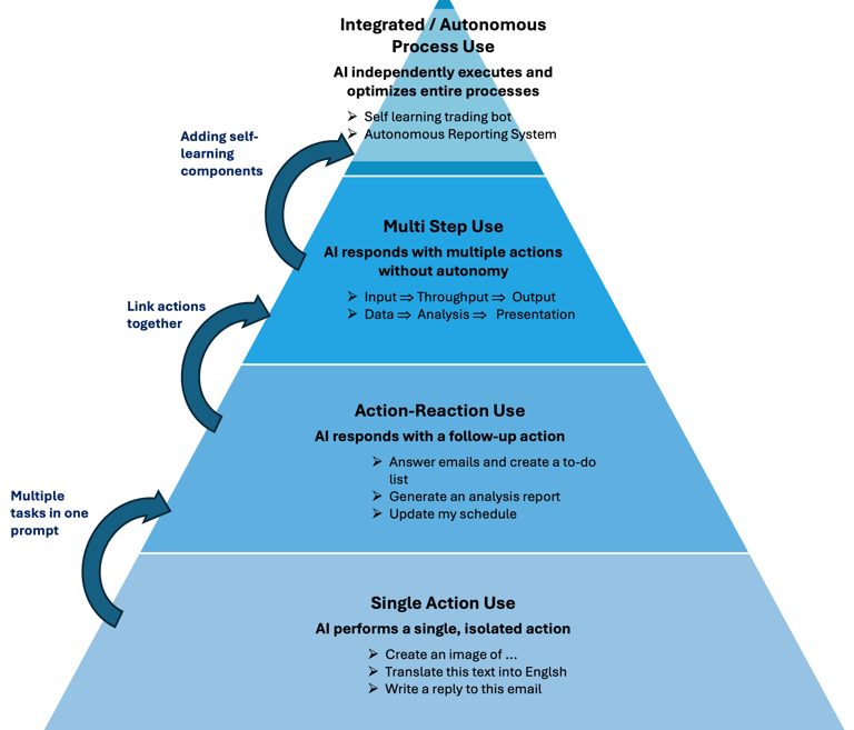 Veel organisaties denken dat ze “AI inzetten”, terwijl ze in feite blijven steken in level 1 of level 2. Pas bij level 3 en vooral level 4 komt het echte productiviteits- en innovatiewinst naar boven